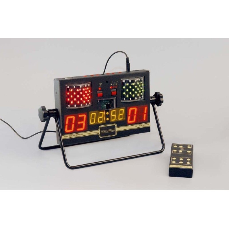 Appareil 3 armes agréé FIE avec chronomètre et score piloté par télécommande infrarouge.